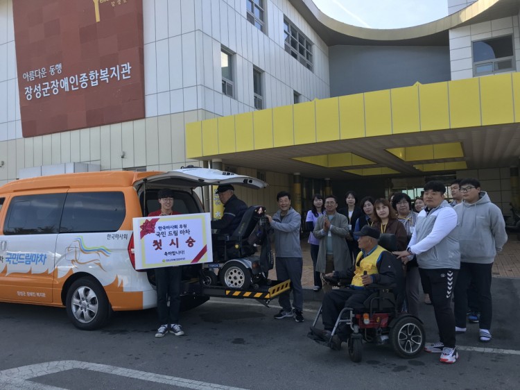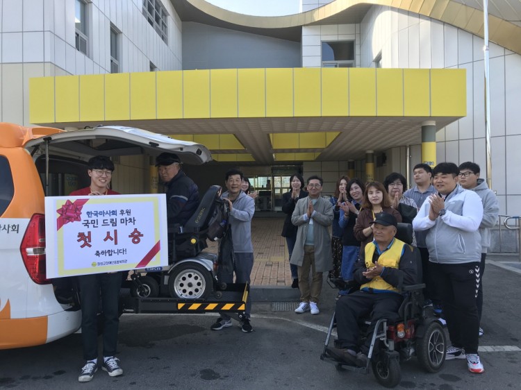 복지관에서는 '한국마사회 렛츠런재단 국민드림마차 선정사업'에 휠체어리프트 특장차가 선정되어, 휠체어 이용자를 모시고 첫 시승식을 하였습니다.