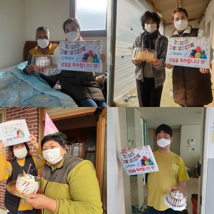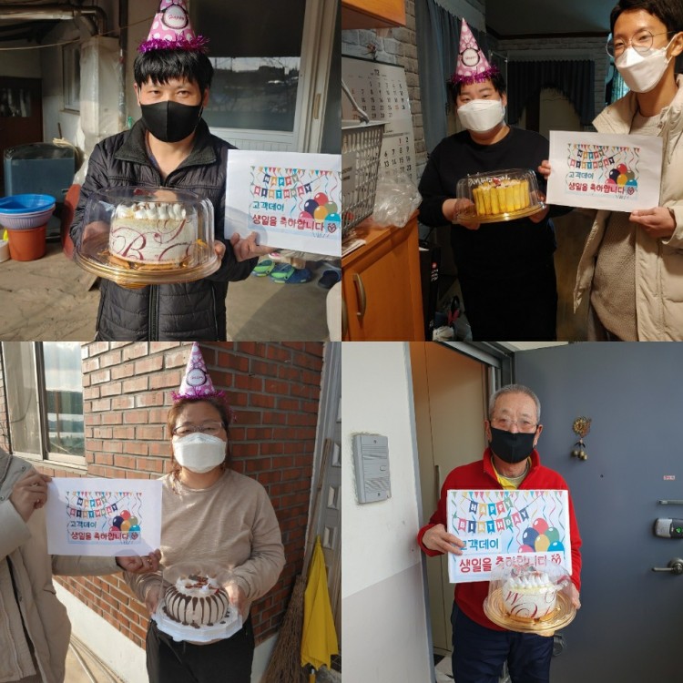 마스크 착용 후 11월 12월 생일자인 주인공들에게 각 가정으로 케익을 배달하고