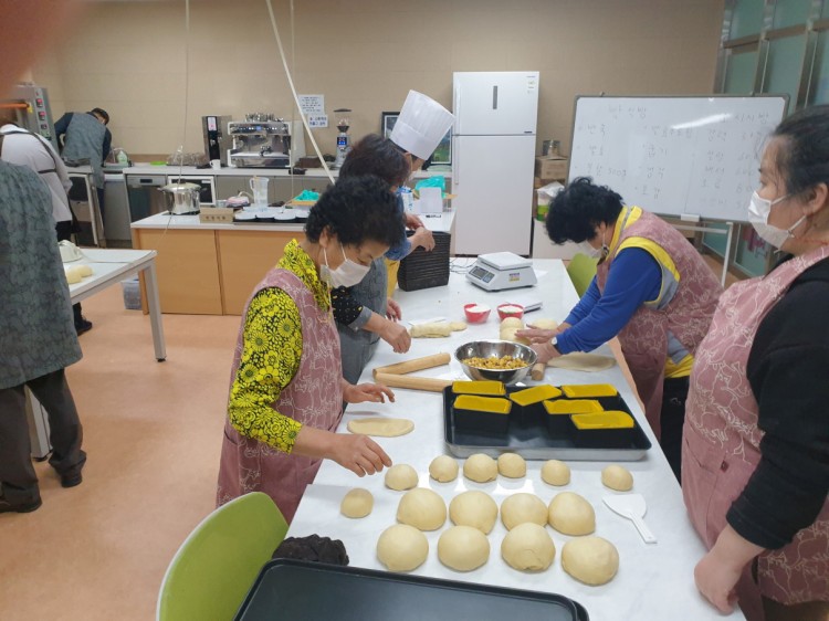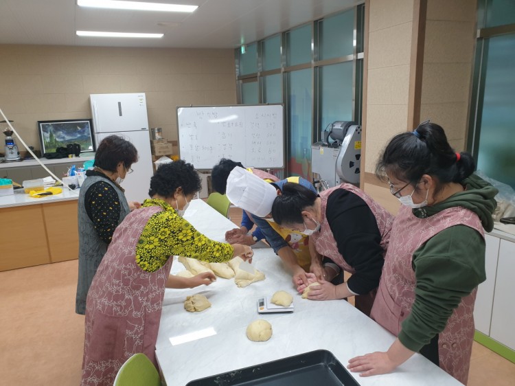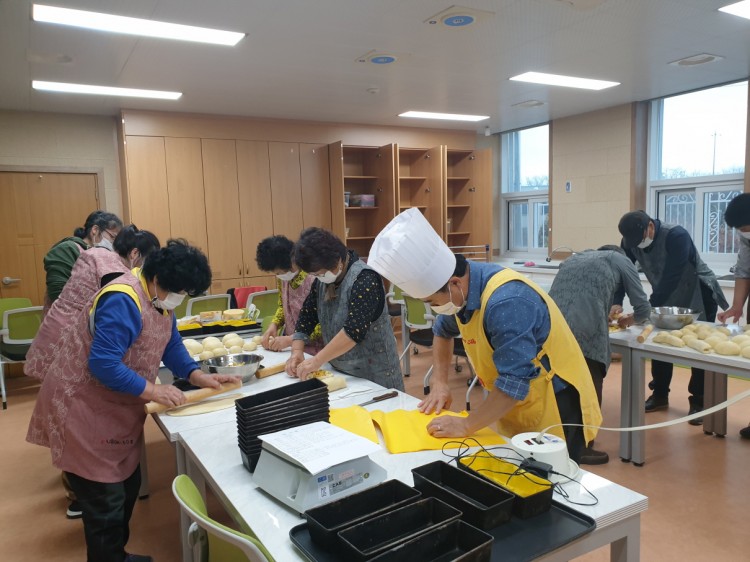 전남평생교육활성화사업 제과, 제빵교육이 장성교육지원청 직업체험실에서 11월 19일 13:00~16:00까지 10명이 참여하여 밤식빵 만들기를 진행하였습니다.