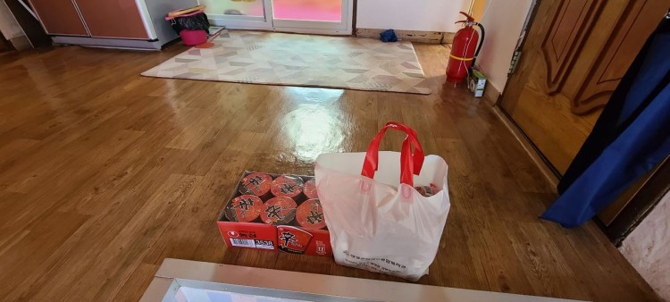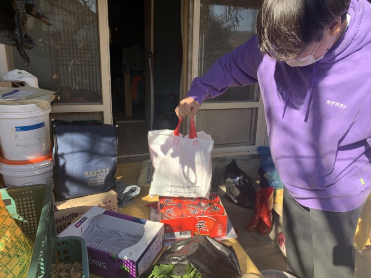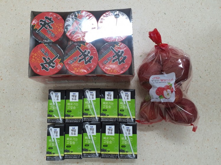 대체식은 사과, 두유, 라면을 전달해 드렸으며, 코로나19 예방수칙인 비대면을 준수하며 전달하였습니다.