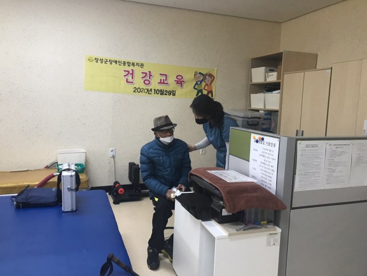 10월29일 목요일 장애인 복지관 이용자 및 보호자 40명을 대상으로 스트레스 지수 측정 및 혈관나이를 알아보는 시간을 가졌습니다. 코로나 19로 인해 한분씩 소독 후 신체건강행동 척도를 확인 후 맥박을 재어 최근 3년 동안 누적된 데이터를 보면서 혈관에 대한 궁금증과 건강한 운동습관에 대해 알아보는 소중한 시간이었습니다.