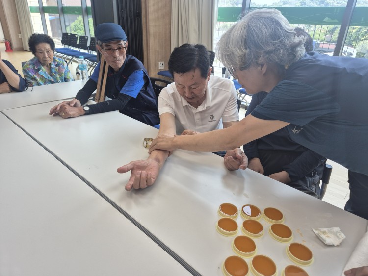 특히 물집이 생기신 분과 벌레에 물려 팔이 부어오르신 분께서 직접 만든 연고를 발라보셨는데요, “바르자마자 통증이 가신 것 같다”고 만족해 하시며 연고를 챙겨가셨습니다.