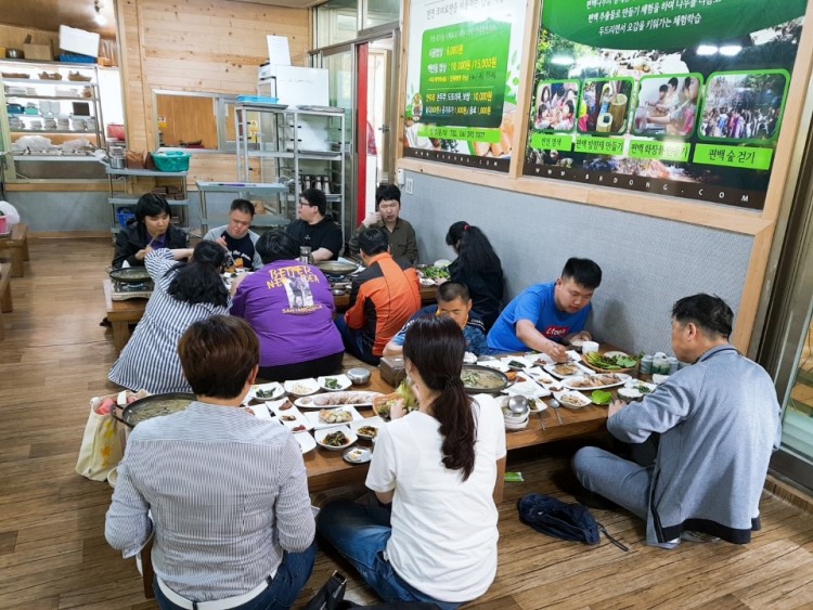 체험 후에는 다양한 나물, 수육 등 건강한 음식으로 맛있는 점심식사를 하였고, 피톤치드 가득한 숲속에서 관장님과 이야기도 나누고 사진도 찍으며 즐거운 시간을 보내고 돌아왔습니다.