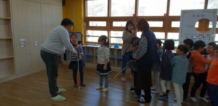 아동들이 장애인 인식 개선에 진지하게 체험 했다니