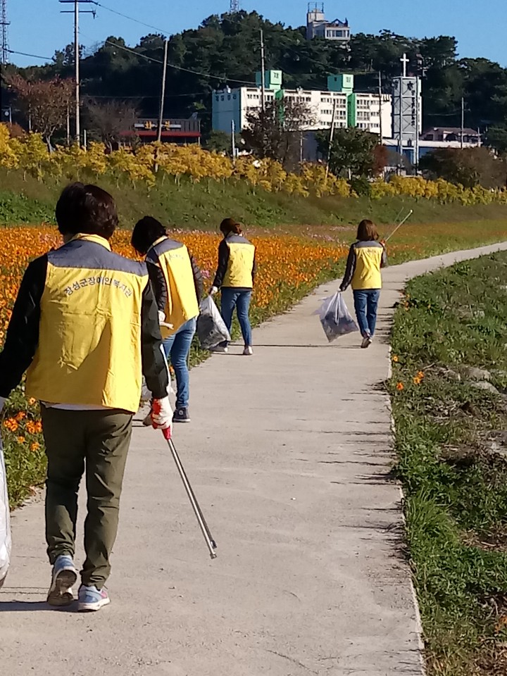 하루하루가 다르게 노란꽃잔치행사장을 찾아주시는 분들이 늘고 있네요... 쓰레기로 인해 예쁜꽃들을 보며 느끼는 마음이 상하지 않도록 관장님을 비롯한 장애인복지관 전직원이 오늘 행사장 주변 쓰레기줍기를 실천하였습니다. 저희의 조그마한 노력이 장성을 찾아주시는 분들의 마음을 더 흐뭇하게 할 수 있었으면 좋겠습니다.