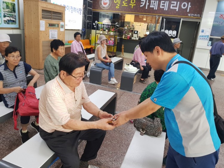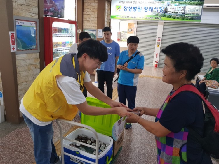 저희 복지관에서는 지역사회와 함께 하는 행사의 일환으로 2018년 7월 25일(수) 15:00~ 15:40까지 장성군버스터미널과 장성역 일원에서 폭염속에서도 안전운행에 최선을 다해 주고 계시는 택시 및 대중교통 운전자 및 대중교통을 이용하는 지역민을 대상으로 이 무더위를 조금이나마 식혀드리고자 시원한 음료와 에너지 충전바를 나누어 드리는 행사를 진행하였습니다. 앞으로도 저희 장성군장애인종합복지관은 지역민께 먼저 다가가는 복지관이 되도록 최선을 다하겠습니다.