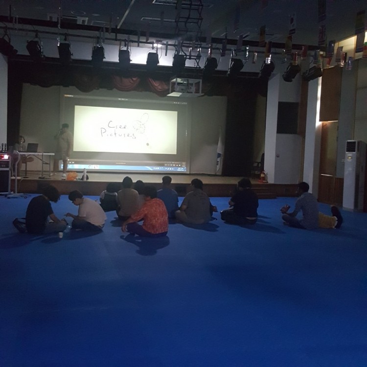 숙박도 하고 강당에서 시원하게 영화관람도 하였습니다.