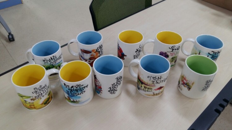 머그컵에 예쁜 그림과 글을 넣어 나만의 멋진 컵을 완성하여