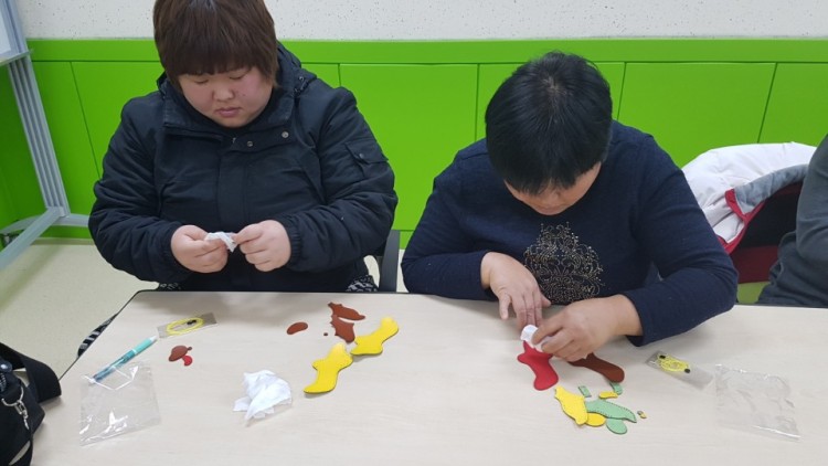보건소와 연계하여 참여하시는 분들 및 이용장애인이 하나되어 예쁜 작품을 완성하였습니다.