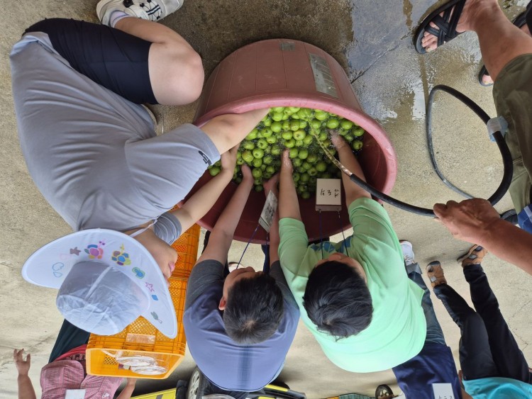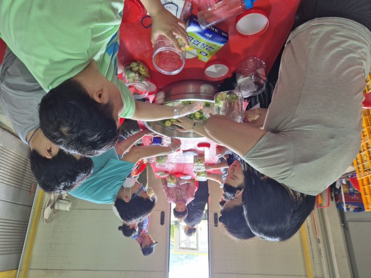 사과와 설탕이 잘 섞일 수 있도록 통을 흔들며 정성을 담아 만들고, 잠시 기다리는 동안에는 작년에 만든 사과청을 맛보는 시간도 가졌습니다.