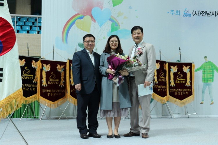 전라남도 장애인 한마음 대축제일 장애인을 향한 열정과 노고에 보답으로 김해인선생님께서 전라남도 도지사 상을 수여 하심에 복지관을 대표하여 다시 한 번 축하 드립니다.
