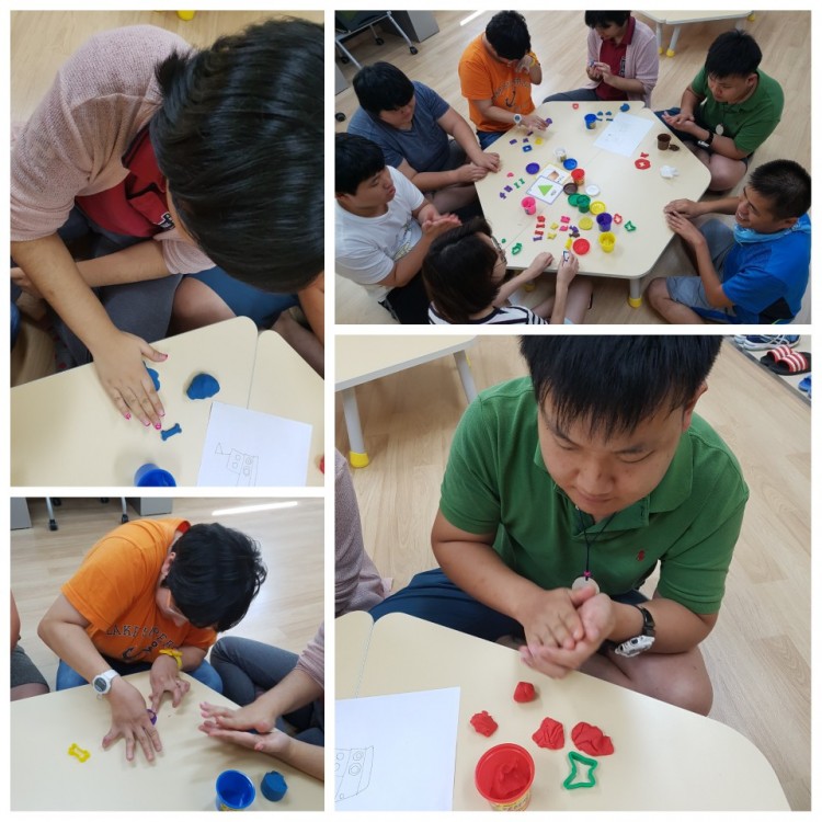 미술활동으로 클레이하는 우리 주간보호 이용자분들의 활동모습입니다.