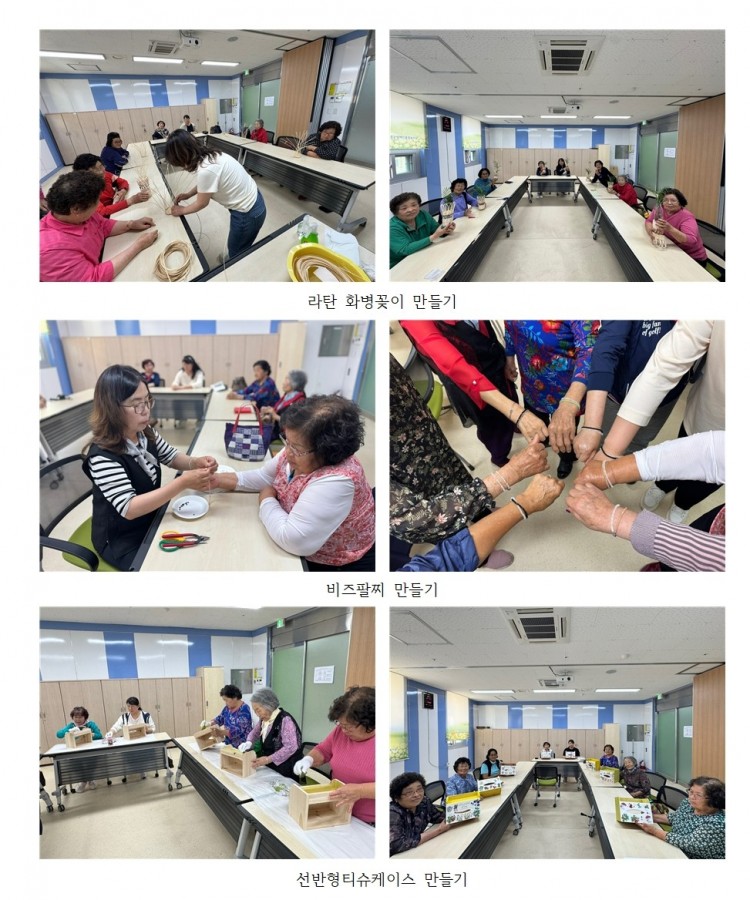 일상 속에서 실용적으로 사용할 수 있는 소품들을 직접어 참여자들에게 큰 만족감을 주었으며, 참여자인 변○○님은 “완성한 작품을 집에 두었더니 손주와 자녀들이 예쁘다며 가져가길 원해 주었다”며 뿌듯한 소감을 전하기도 했습니다.