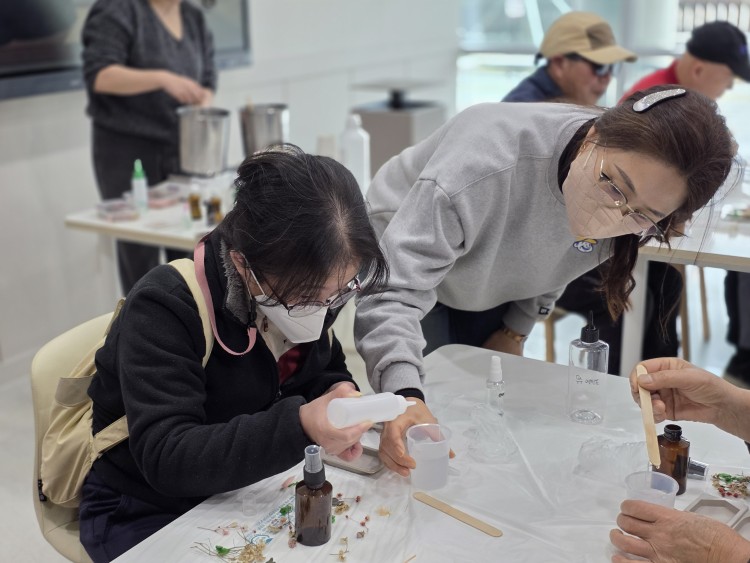 참여자들은 강사의 안내에 따라 편백 오일 농도를 맞추고, 원하는 향을 블렌딩한 뒤 스프레이 용기에 충전해 나만의 룸스프레이를 완성했습니다.