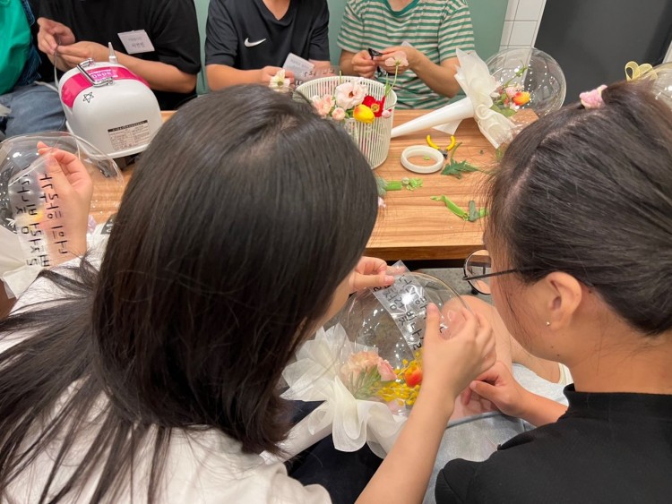 점심식사 후 외부로 나가서 꽃풍선 아트 체험을 진행했습니다.