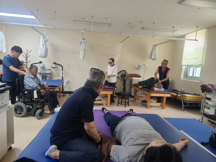월 2회 장성군시각장애인연합회에서 안마 원장님이 내관하셔서 16명에게 안마를 진행해주셨습니다. 사전 접수 참여자분들과 대기자에게 순서대로 참여 안내를 드렸습니다." 아픈 곳을 찾아서 눌러주는 것 같아 몸이 편한것 같다."고 감사의 인사를 해주셨습니다.