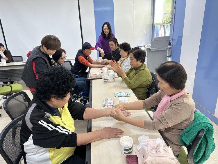 지난 2월부터 진행되어온 섬섬옥수 프로그램 참여자들이 그동안 배워온 손 마사지 기법을 복지관 이용고객을 대상으로 직접 시연하는 뜻깊은 시간을 가졌습니다.