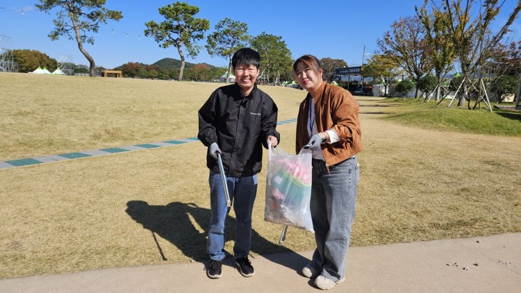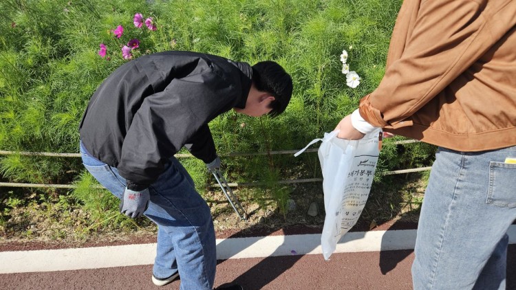집게를 들고 황룡강 주변의 쓰레기를 줍는 방식으로 진행되었습니다.