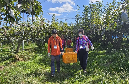 10월 16일에는 직업적응훈련반이 오전,오후, 오늘은 주간보호반이 옐로우창농에서 배수확 하여 포장하기를 진행하였습니다. 배농장으로 이동하여 각자 배를 만져보고 너무 작지 않은 크기의 배를 따지 않고 적당한 크기의 배를 따서 담아왔습니다. 배 포장을 하고 배즙을 봉지에 담아서 이용자분들께 나눔을 해 주셨습니다. 모두 싱글벙글 행복한 시간이었습니다.