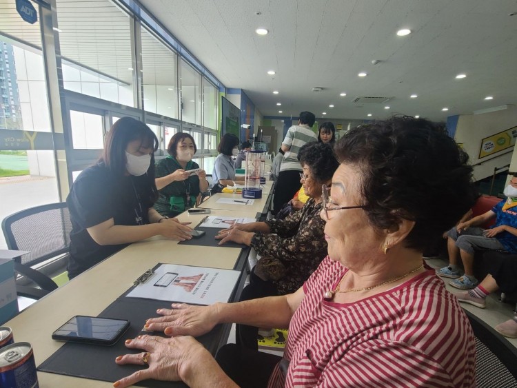폐활량측정법은 가장 기본적인 폐기능검사법으로 시간에 따라 들이마시고 내쉬는 공기의 부피와 유량을 측정하는 검사입니다. 검사를 통해 참여자들 대부분 수치가 정상 폐기능을 유지하고 있었습니다. 심방세동검사는 두 손가락마디를 이용하여 정상적인 맥박의 세동을 통해 즉각적인 위험요소를 알아낼 수 있어 참여자들의 호응도가 높았습니다.