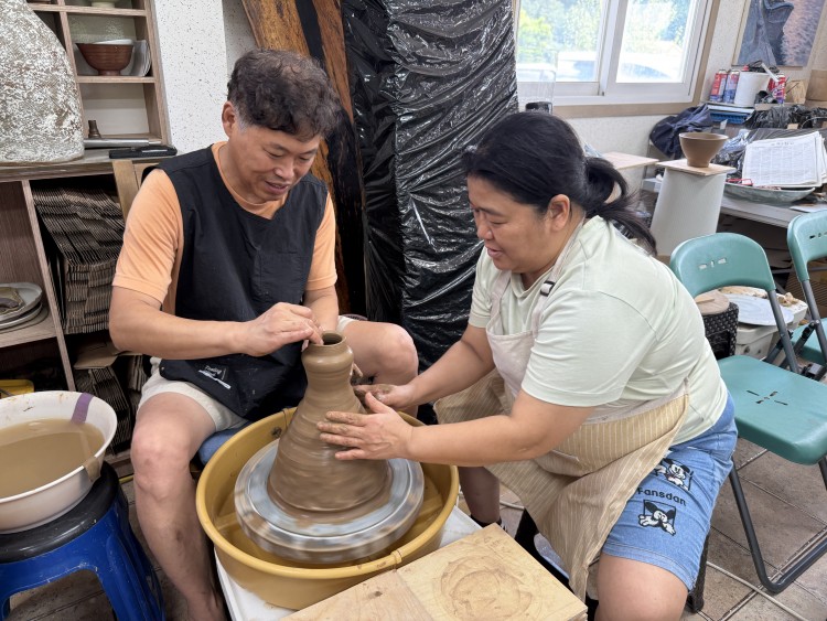 체험 프로그램은 도예가와 함께하는 물레 체험이었는데요. 물레 차례를 기다리는 동안에는 흙 점토를 이용해 내가 상상하는 그릇이나 작품을 자유롭게 만들어보는 시간을 가졌습니다. 단순한 점토놀이만으로도 시간 가는 줄 모를 만큼 즐거워하셨답니다.