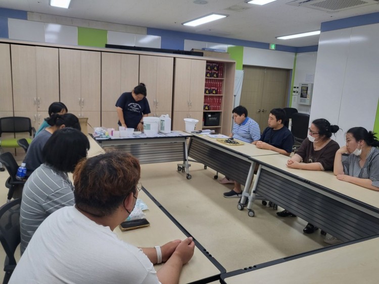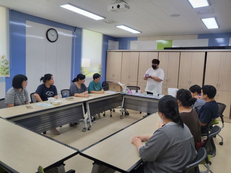 8월 16일 발달장애인자조모임 참여자들은 천연 스톤공예수업을 진행하였습니다.