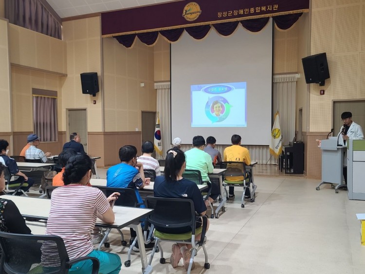 2023년 7월 6일 10:00~11:30 복지관 2층 강당에서 이용장애인 30분을 모시고 건강한 치아의 첫걸음을 위해 장성군보건소와 연계하여 건강교육을 진행했습니다.