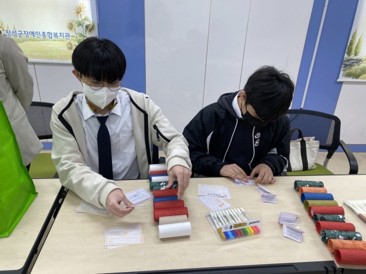 금일 하이텍고등학교와 연계하여 업싸이클링 소품만들기 프로그램인