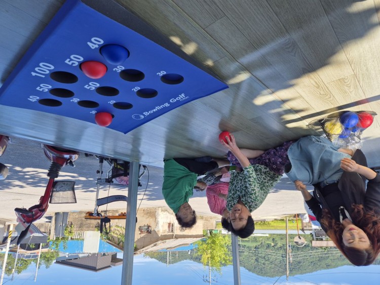 처음보는 운동 도구에 선뜻 나서지 못하시다가 한분, 두분 공을 던져보기 시작하더니 어느새 모든 분들이 "이번에는 내가 던져봐야것네", "내가 100점에 두번이나 넣었네" 라고 하시며 너무 즐거운 시간을 보냈습니다.