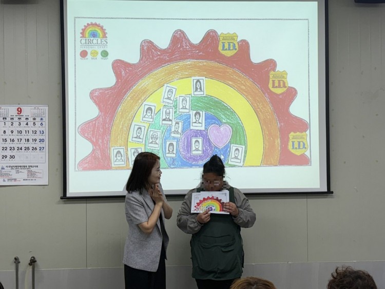 참여자들은 무지개 색을 직접 색칠하고, 그 위에 가까운 사람과 먼 사람을 스티커로 구분해 붙여보며 관계의 의미를 이해하는 시간을 가졌습니다. 활동 중에는 “색칠하는 게 일하는 것보다 재밌어요”와 같은 즐거운 반응도 있었습니다.