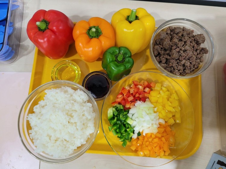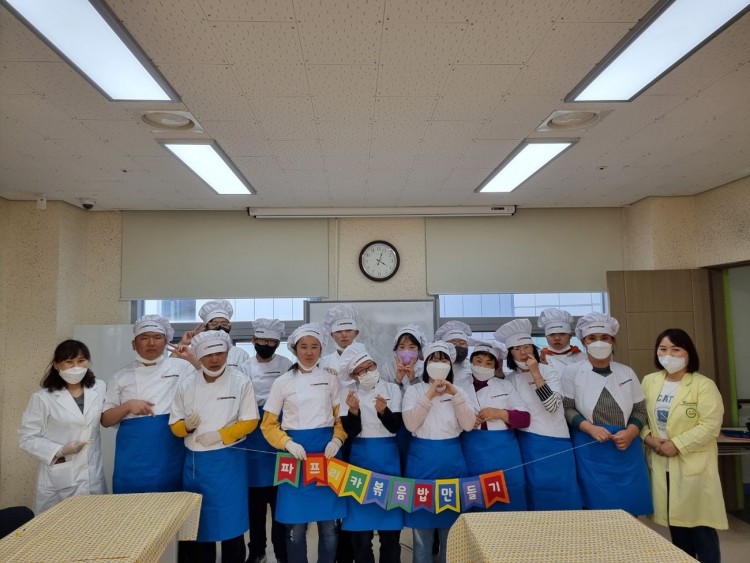 직업지원훈련생은 “알록달록 채소·과일을 먹어요” 주제로 컬러푸드의 종류와 기능에 대해 알아보고, “파프리카 꼬마기차 볶음밥” 만들기 활동을 통해 채소·과일을 골고루 먹으려는 태도를 가질 수 있도록 하였습니다.