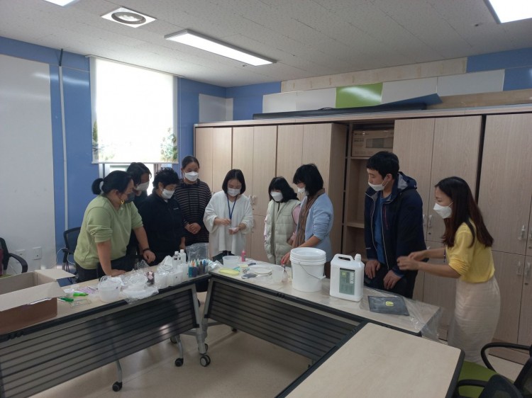 지난 시간에 이어 오늘은 두번째 진행해 본 수업이라 참여자들 모두 지난번보다는 좀더 익숙하게 도구와 제품들을 다루며 만들기를 해보았고, 다 만들어진 완성품을 보자 지난번 만들었던 작품보다 훨씬 더 세련되게 나왔다며 기뻐하였습니다.