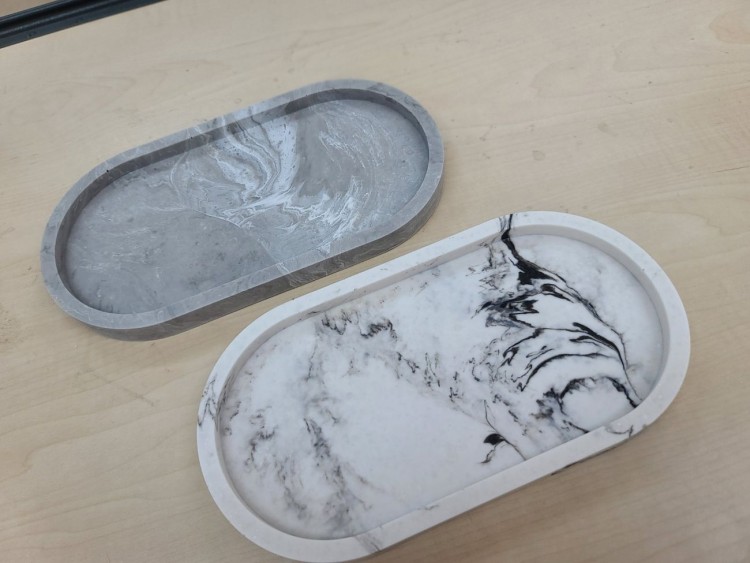 먼저 유튜브 영상을 시청하며 천연스톤공예의 다양한 방법들에 대해 알아보고 숙지하는 것을 시작으로, 오늘 이시간에는 '마블기법'을 적용한 트레이를 만들어보았습니다.