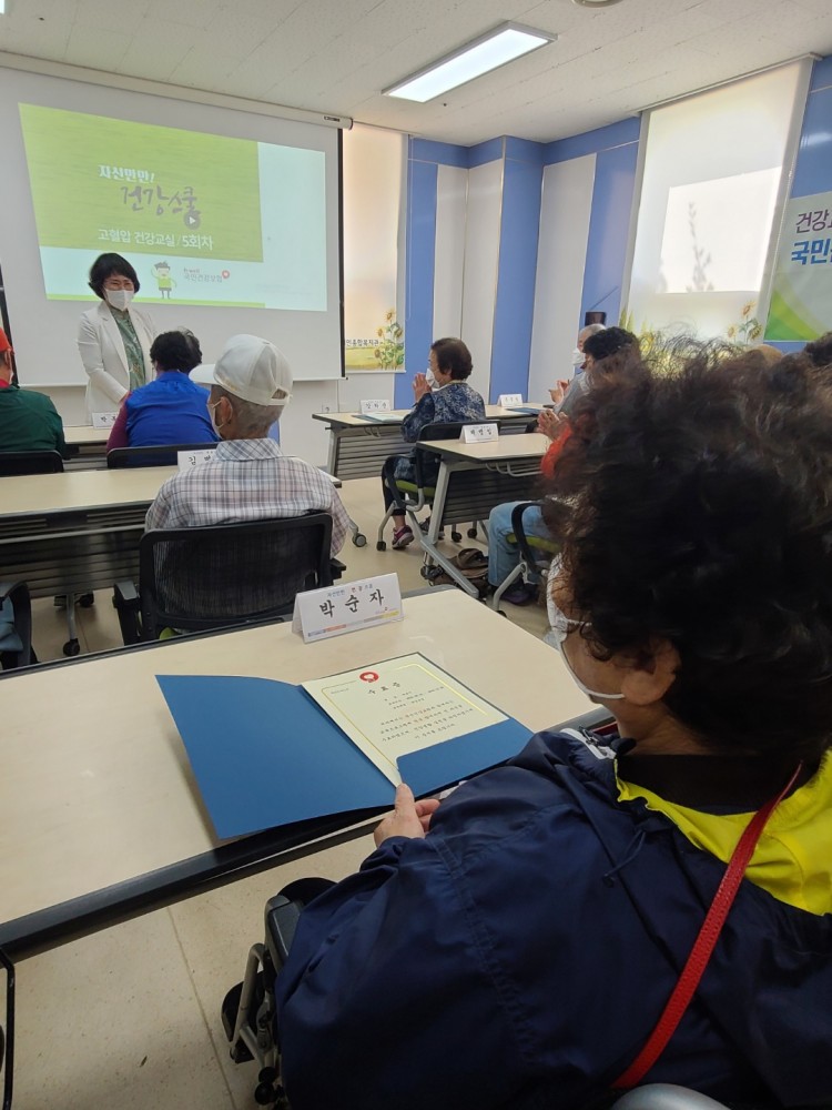 건강보험공단에서 수료증을 받고 고혈압 생활수칙을 다시한번 점검해보면 좋을것 같습니다. 2023년에도 유익한 당뇨교육으로 연계하여 알찬 교육이 되었으면 좋겠습니다.