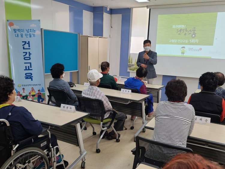10월 26일(목) 장성군장애인복지관 1층 세미나실에서 건강보험공단 장성담양지사와 연계하여 10:30~11:30 13명을 대상으로 혈압교육 4회기를 실시하였습니다.