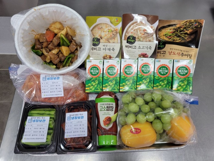 사랑과 정성입니다. 요리하시는 영양사님께서 새벽에 직접 출근하여 만드셨고, 음식 완성 후 곧 장 담당선생님과 사회복무 요원님께서 공수 하셨다는 것 아닙니까? 어버이날 선물입니다.