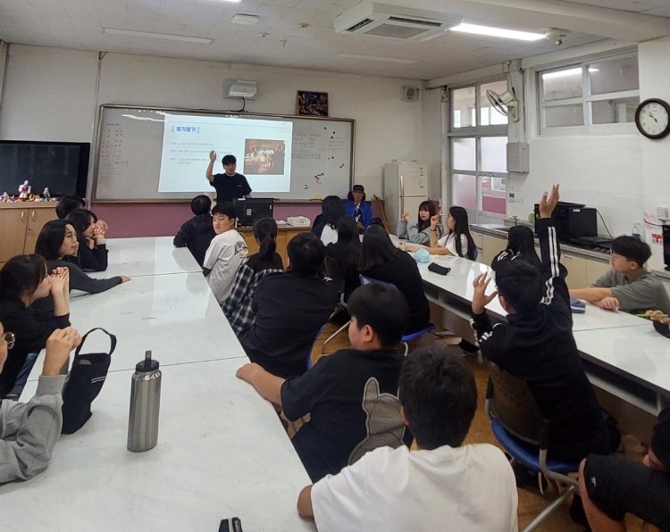 2학기 장애이해교육의 첫 시작을 남면에 위치한 장성남중학교에서 중증장애인 보조강사와 함께 전학년(총 6학급)을 대상으로 진행했습니다.