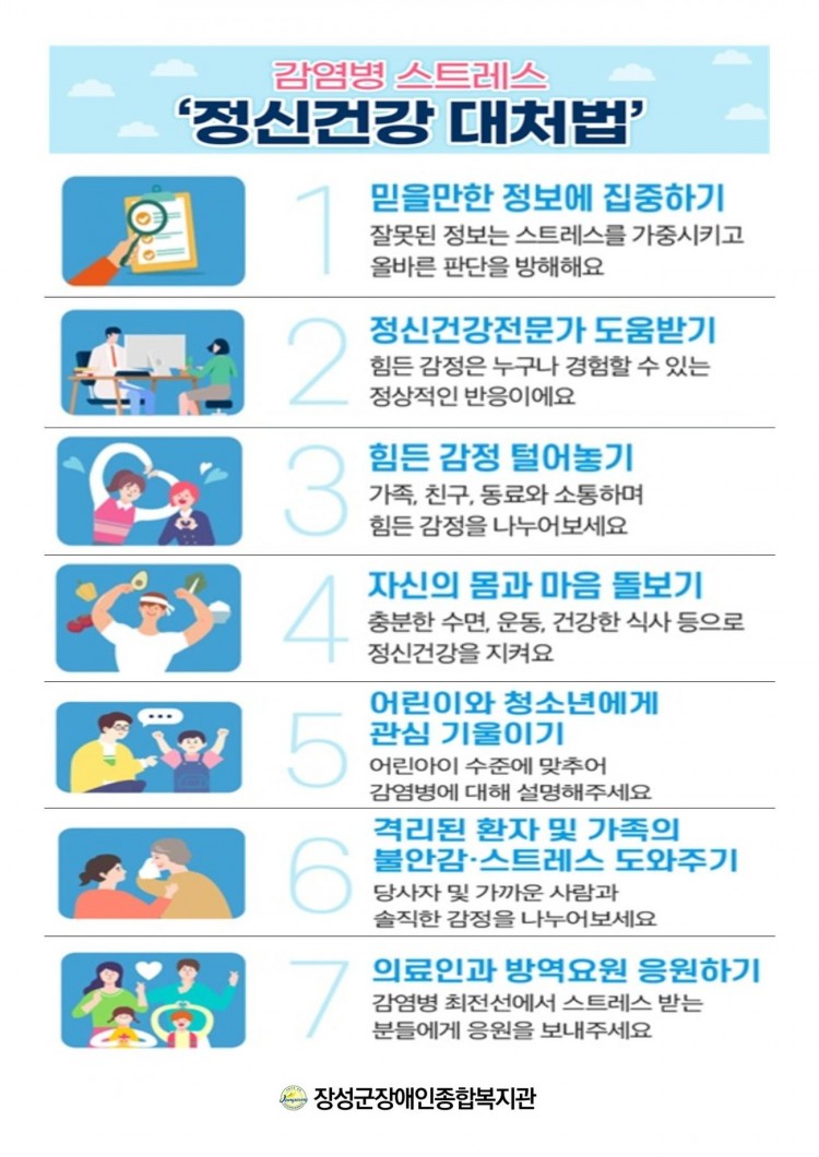 복지관 등록 장애인 120가정을 대상으로 하루 5분 스트레칭, 감염병 스트레스 '정신건강 대처법'에 대한 안내문을 부식배달과 함께 드렸습니다.