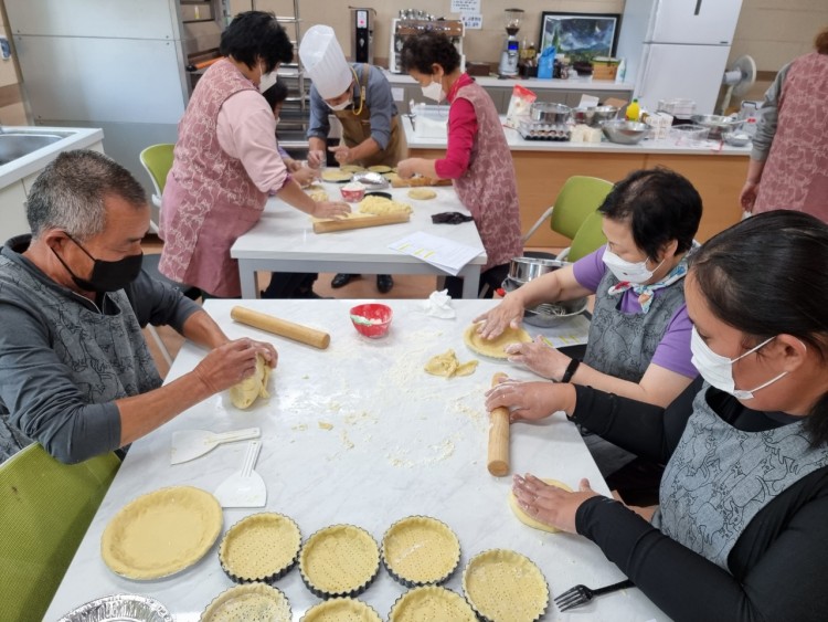 10월 21일 장성군 평생교육활성화지원사업-쓰리Go(배우Go 만들Go 굽Go)빵 8회기에는 샤인머스캣 타르트 만들기가 진행되었습니다.