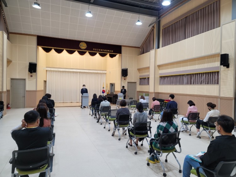 월례회의를 통해 관장님께서 보건복지부 지침과 정책에 따라 복지관 이용고객에게