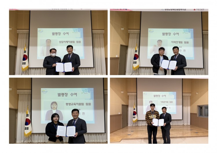 후원금 및 감사패 전달, 우수직원 표창, 직원 임명장 및 발령장 전달, 신입직원 및 장애인일자리 참여자 소개,