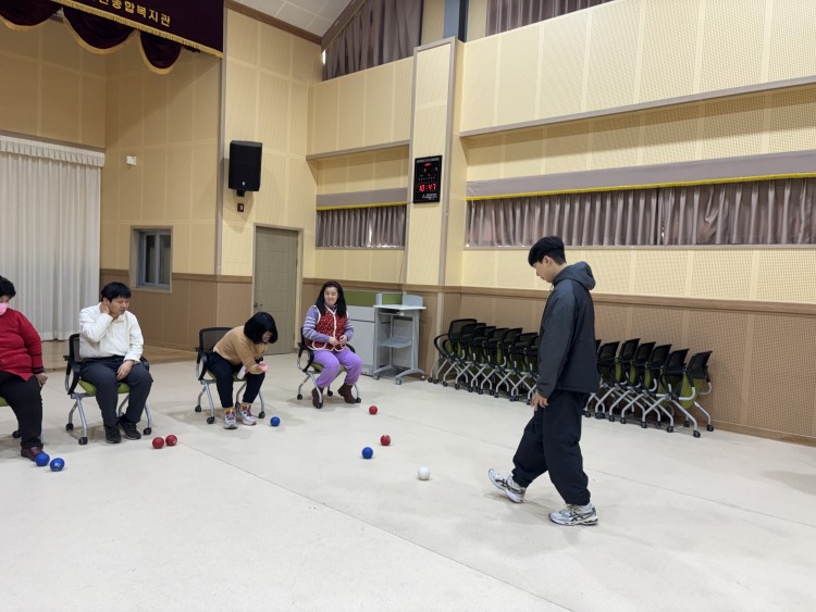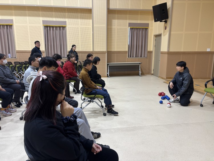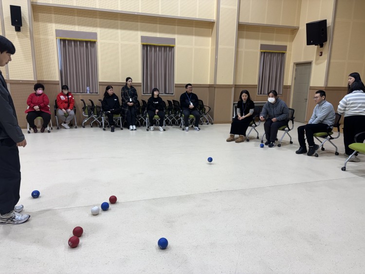체육활동 전에는 안전 유의사항을 안내하고 충분한 스트레칭으로 몸을 푼 후, 생활체육 종목인 보치아 활동에 즐겁게 참여하는 모습을 보였습니다.