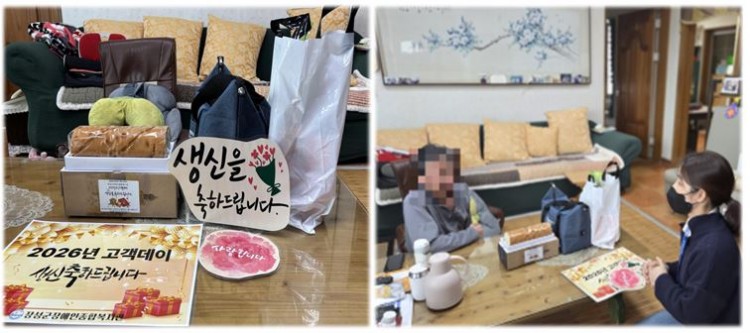 또한, 재가장애인 고객분들 가운데 2월 생일을 맞이하신 일곱분들 가정을 직접 방문하여 푸드지원과 함께 생일을 축하하고 안부를 나누는 시간도 가졌습니다.